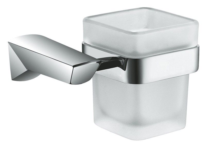 Ποτηροθήκη για οδοντόβουρτσα ή οδοντόκρεμα που συνδυάζει το φινίρισμα χρωμίου με σκληρυμένο γυαλί
